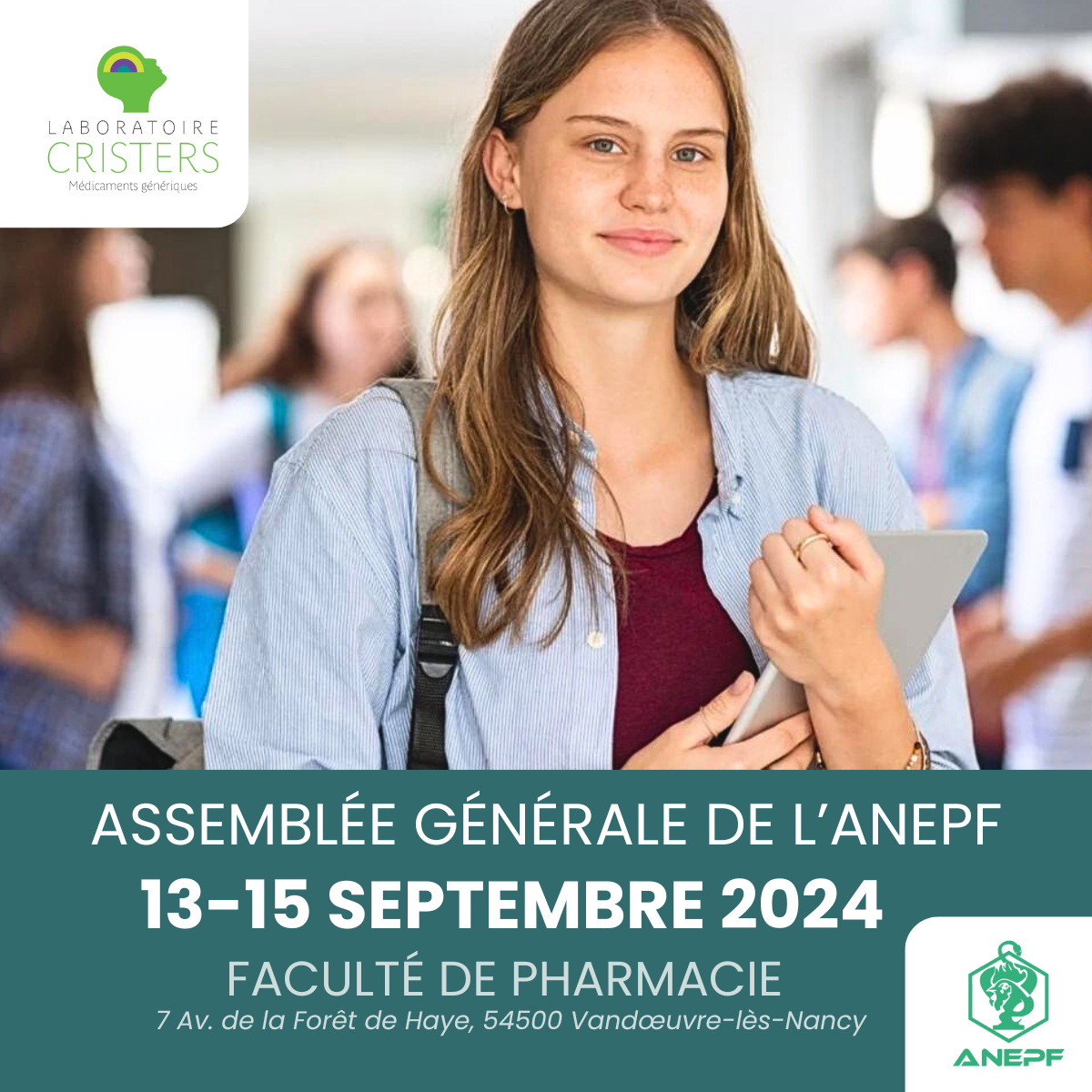 Venez nous rencontrer à l'Assemblée Générale du 13 au 15 septembre 2024 à l'université de Pharmacie (7 Av. de la Forêt de Haye, 54500 Vandœuvre-lès-Nancy). Nos équipes ont hâte de vous accueillir et d'échanger avec vous !